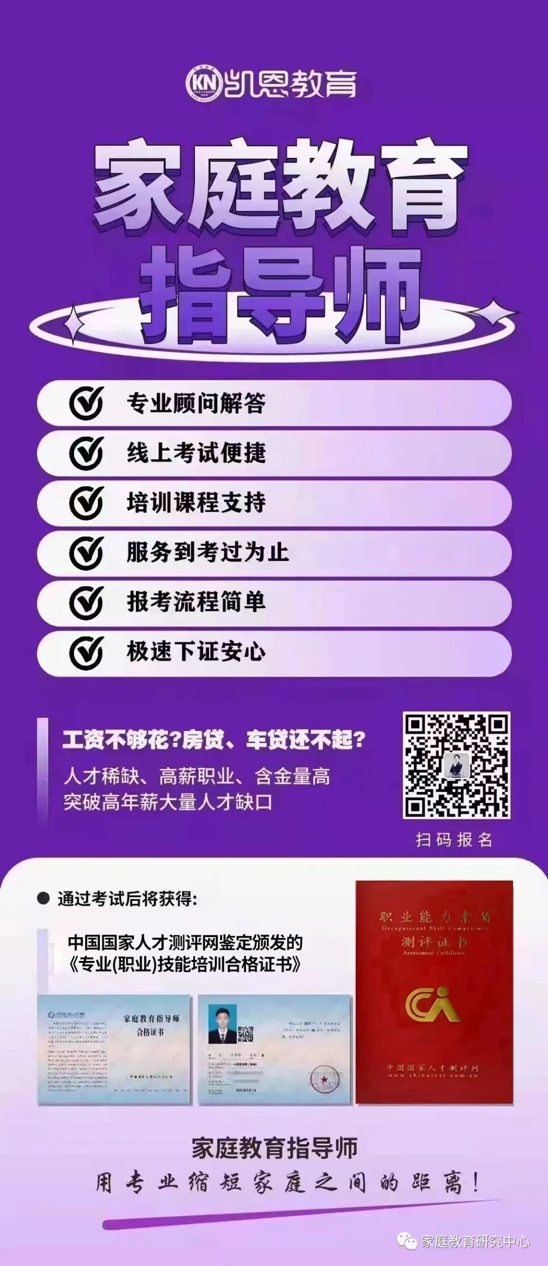 为响应国家政策,扶持行业发展,培养更专业的家庭教育人才,惠及更多家庭,全国《家庭教育指导师》培训考核单位,现面向全社会招生!此次立法提到的《家庭教育指导师》究竟是怎样的?怎么成为《家庭教育指导师》,以及就业前景和薪资待遇如何,大家跟着K仔一起来了解下: